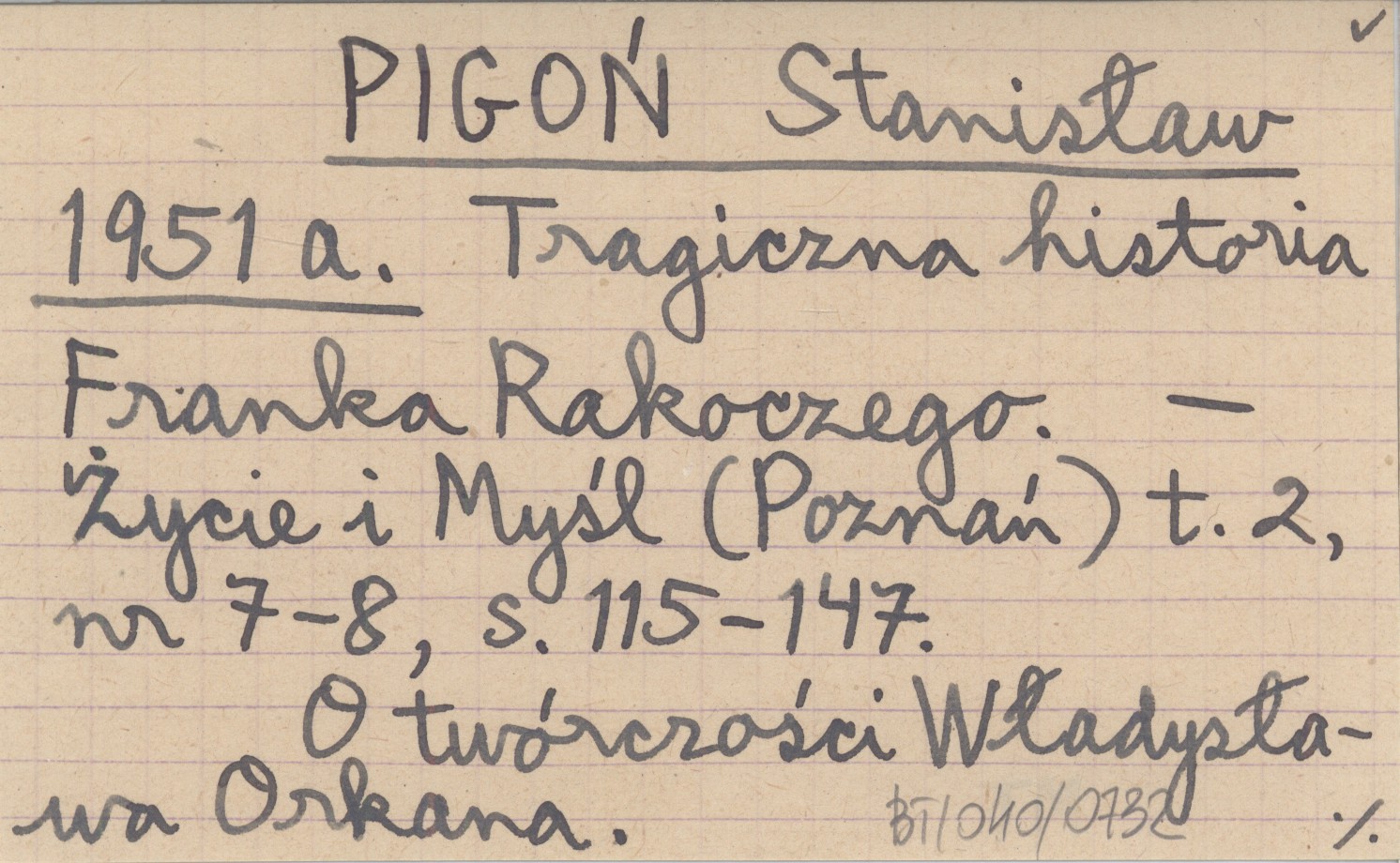 Życie i Myśl (Poznań) , T. 2, nr 7-8: 115-147. O twórczości Władysława Orkana.