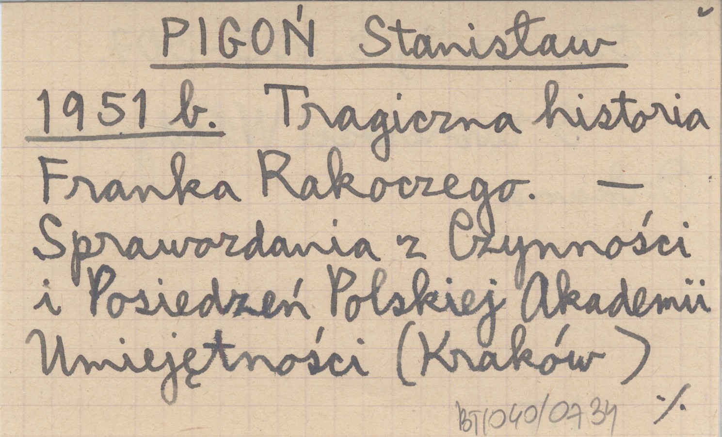 PIGOŃ Stanisław 1951 b Tragiczna historia Franka Rakoczego.