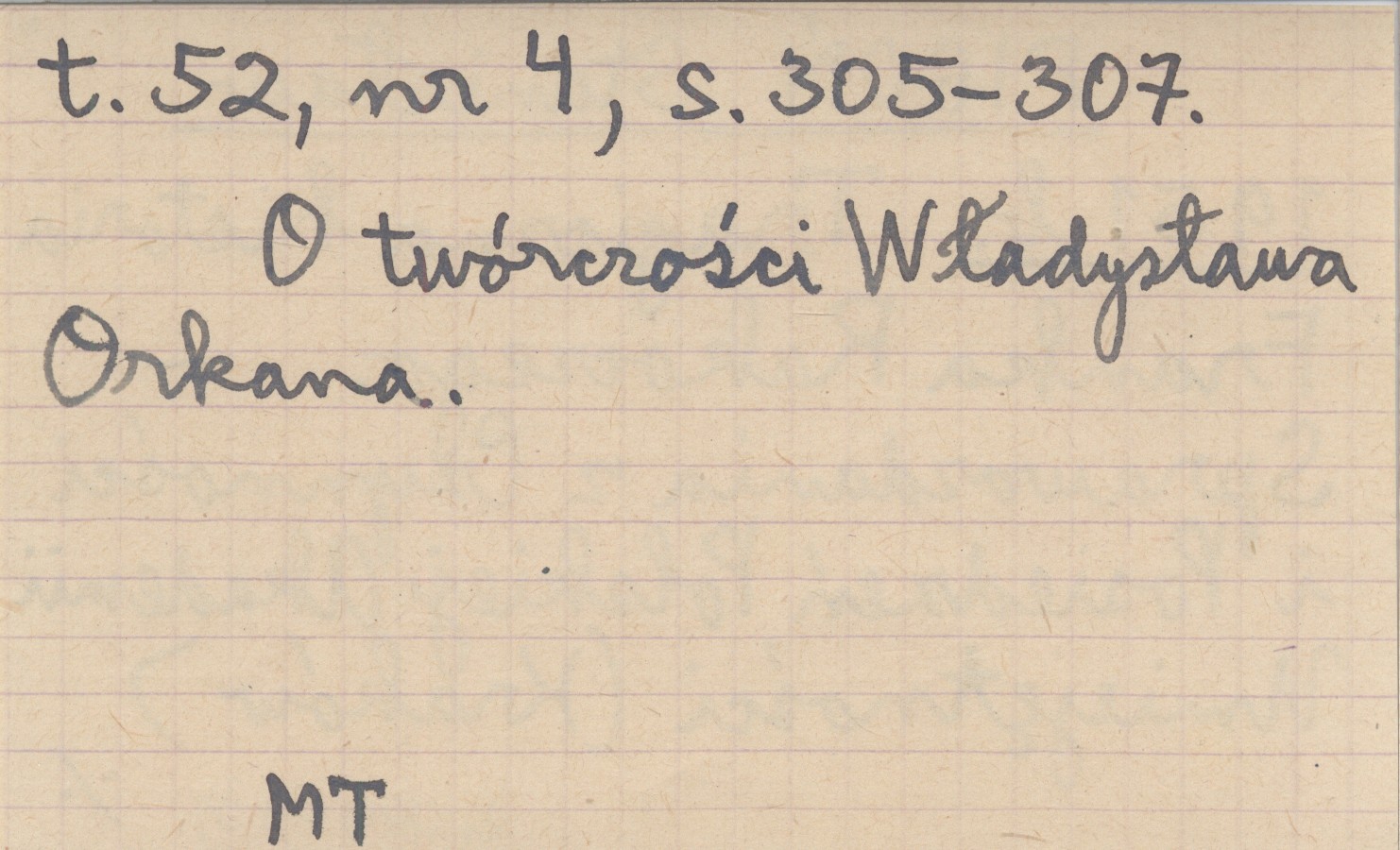 Sprawozdania z Czynności i Posiedzeń Polskiej Akademii Umiejętności (Kraków) , T. 52, nr 4: 305-307. O twórczości Władysława Orkana.