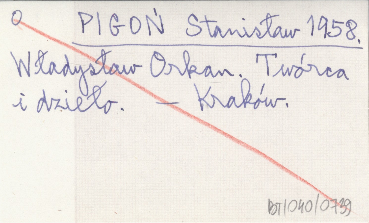 PIGOŃ Stanisław 1958 Władysław Orkan. Twórca i dzieło.