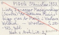 PIGOŃ Stanisław 1957 Listy Ignacego Maciejowskiego (Sewera) do Tadeusza Micińskiego oraz do Marii i Wacława Wolskich.