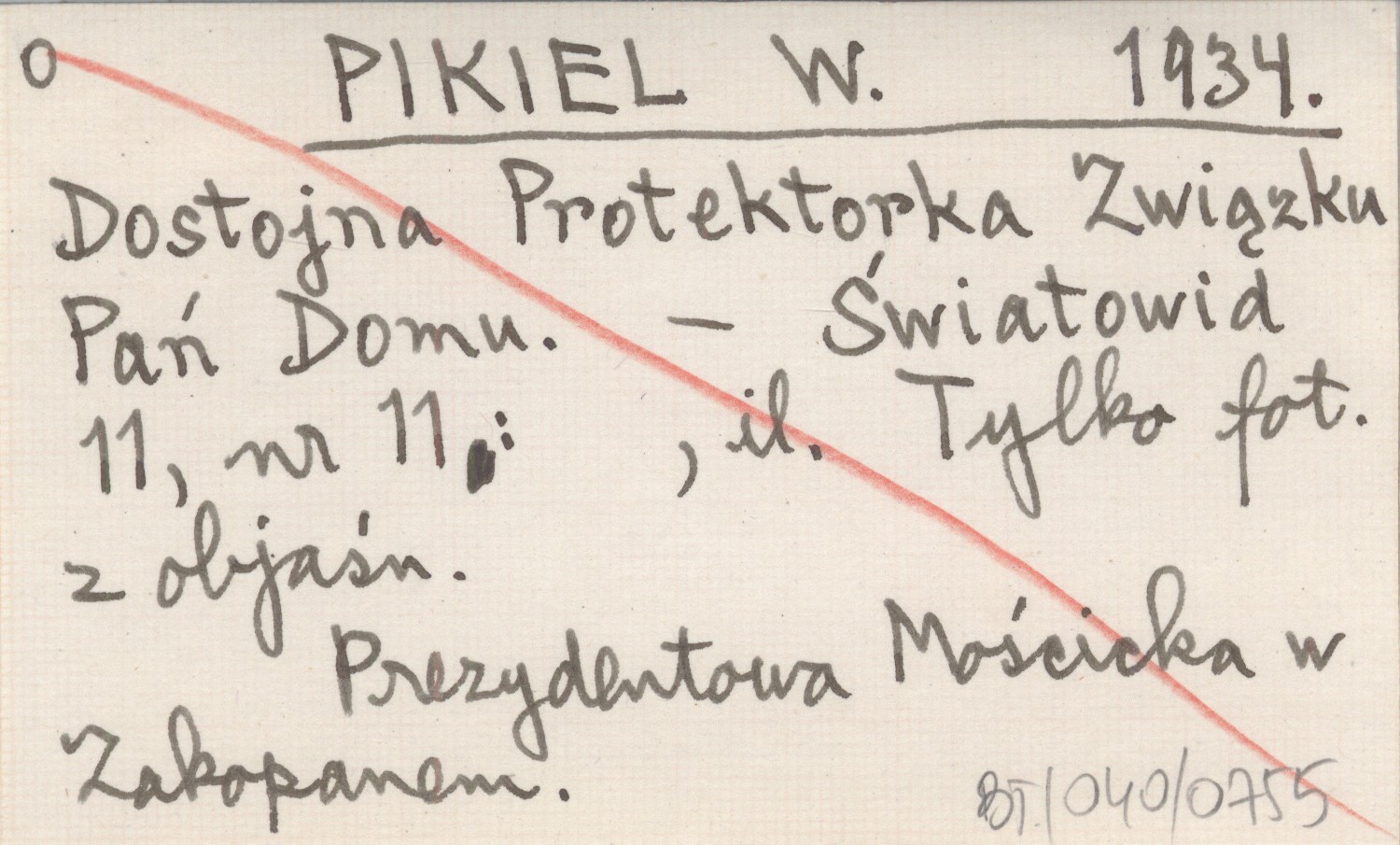 PIKIEL W. 1934 Dostojna Protektorka Związku Pań Domu.