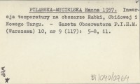 PILARSKA-MYCIELSKA Hanna 1957 Inwersja temperatury na obszarze Rabki, Obidowej i Nowego Targu.