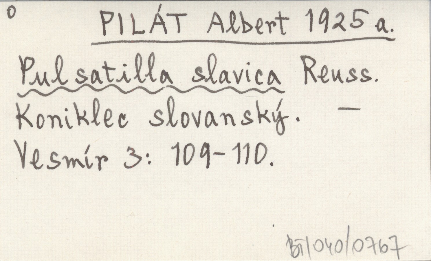 PILÁT Albert 1925 a Pulsatilla slavica Reuss. Koniklec slovanský.
