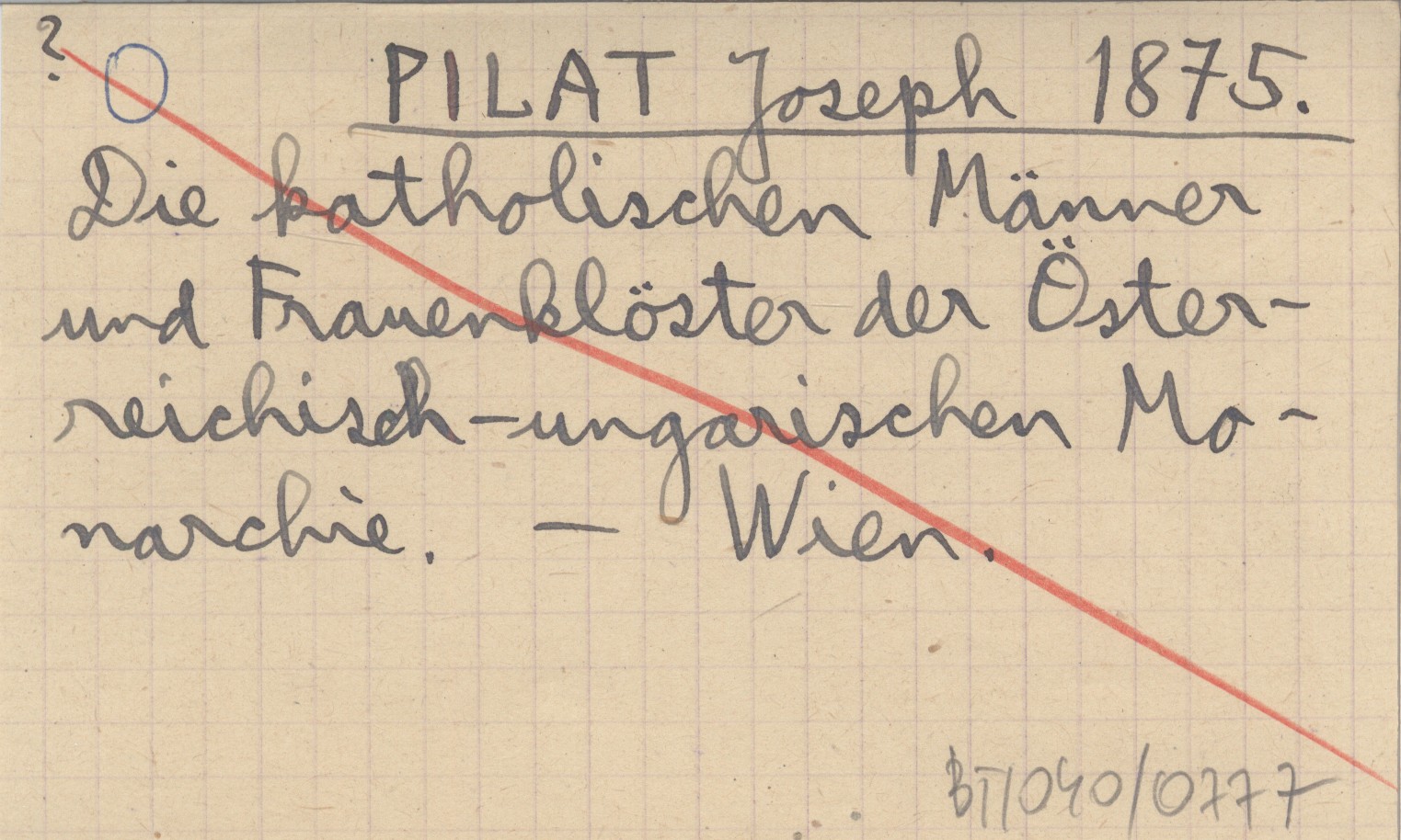 PILAT Joseph 1875 Die katholischen Männer und Frauenklöster der Österreichisch-ungarischen Monarchie.