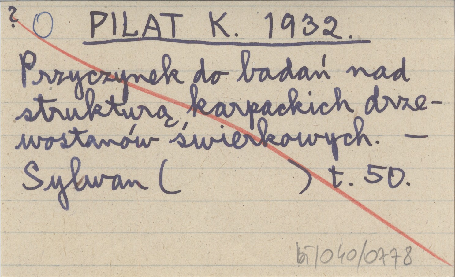 PILAT K. 1932 Przyczynek do badań nad strukturą karpackich drzewostanów świerkowych.