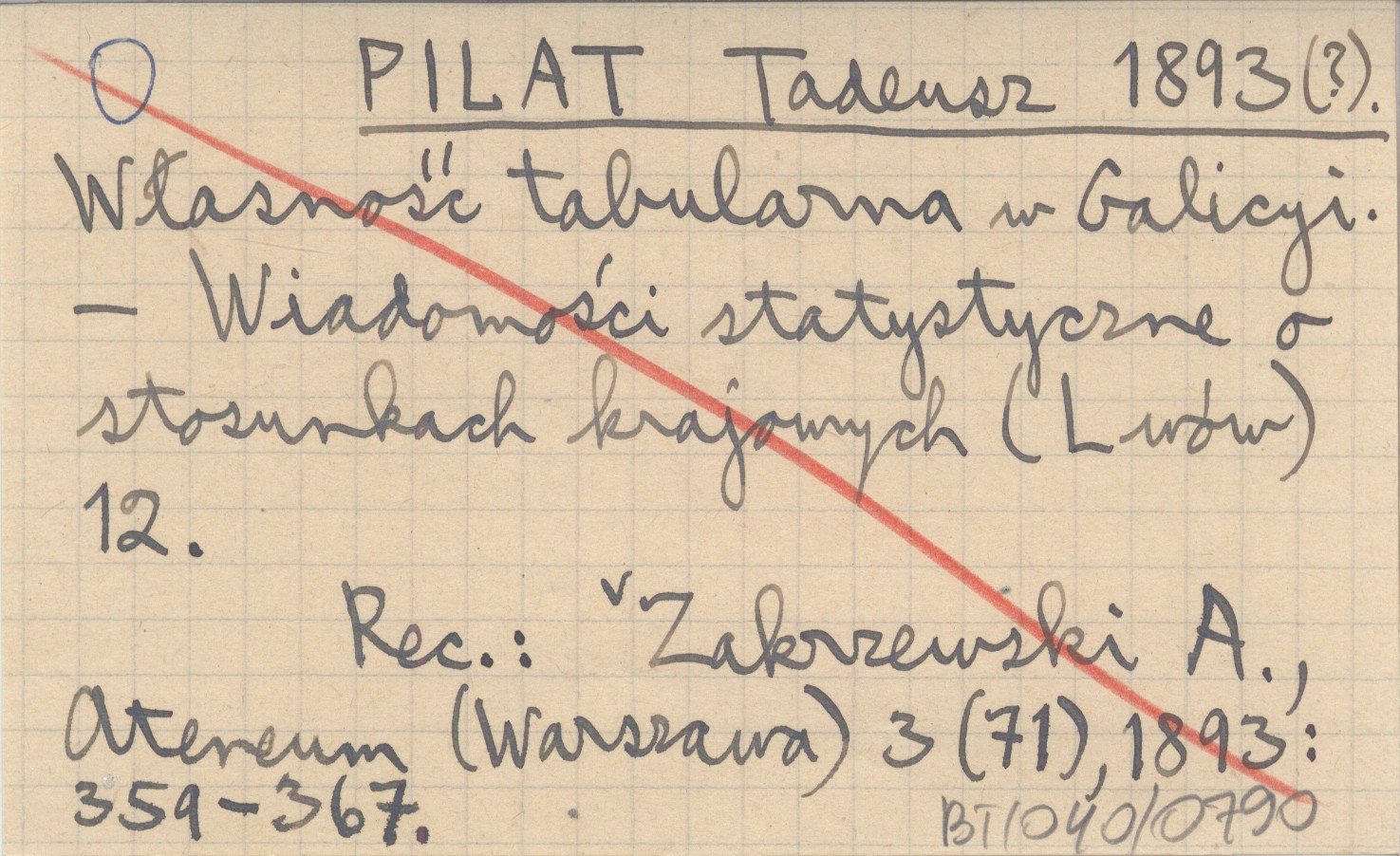 Wiadomości statystyczne o stosunkach krajowych (Lwów) , 12. REC: ZAKRZEWSKI A., Ateneum (Warszawa) 3 (71), 1893: 359-367.