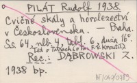 PILÁT Rudolf 1938 Cvičné skály a horolezectví v Československu.