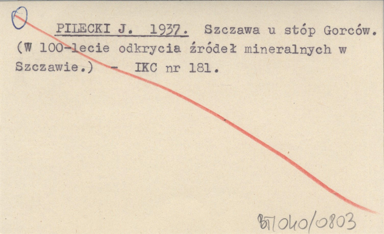 PILECKI J. 1937 Szczawa u stóp Gorców. (W 100-lecie odkrycia źródeł mineralnych w Szczawie).
