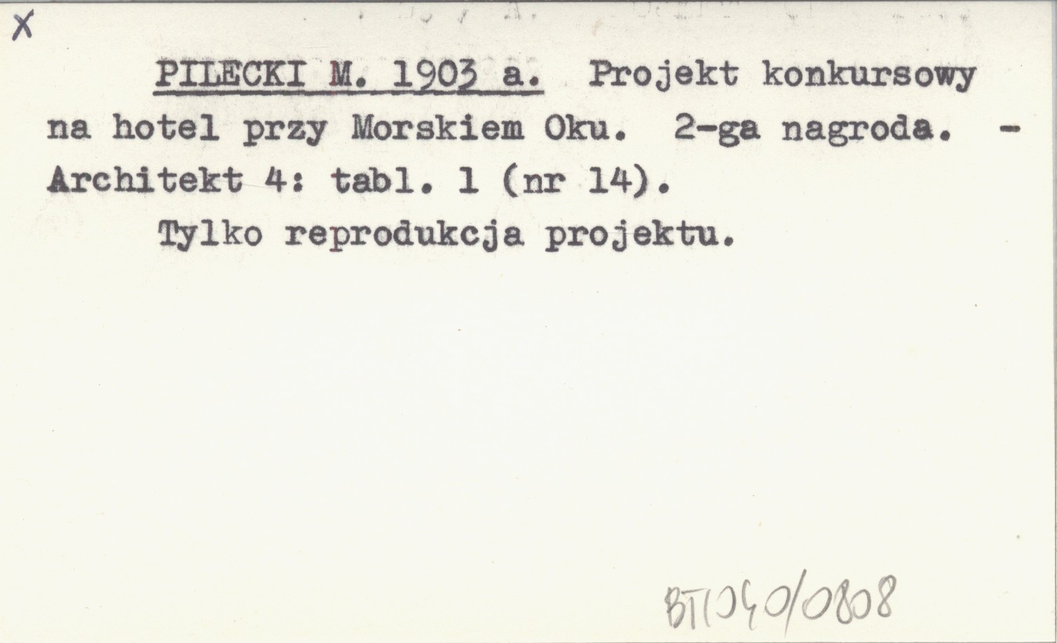 PILECKI M. 1903 a Projekt konkursowy na hotel przy Morskiem Oku. 2-ga nagroda.