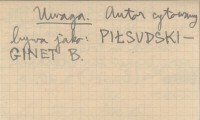 Schweizerisches Archiv für Volkskunde (Basel) , T. 20: 236- ., il. Też odb., 12 s. Uwaga. Autor cytowany bywa jako: PIŁSUDSKI-GINET B.