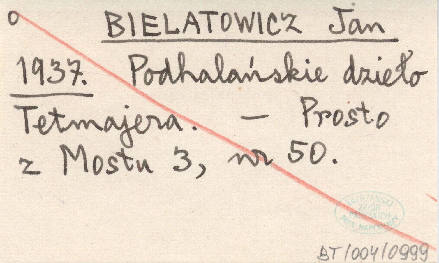 BIELATOWICZ Jan 1937 Podhalańskie dzieło Tetmajera.
