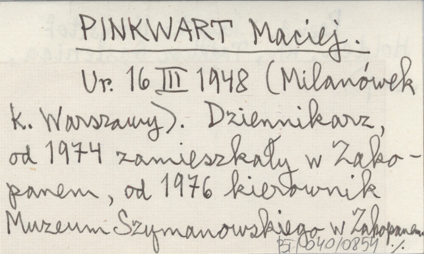 Ur. 16 III 1948 (Milanówek k. Warszawy). Dziennikarz, od 1974 zamieszkały w Zakopanem, od 1976 kierownik Muzeum Szymanowskiego w Zakopanem. Pseudonimy i kryptonimy: Krzysztof Holden, kh, Tadeusz Gąsienica, (mp).