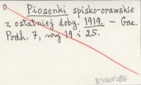 Piosenki spisko-orawskie z ostatniej doby. 1919