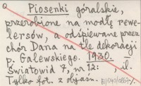 Piosenki góralskie, przerobione na modłę rewelersów, a odśpiewane przez chór Dana na tle dekoracji p. Galewskiego. 1930