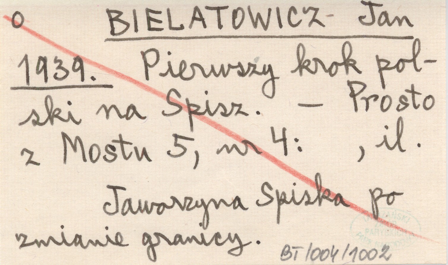 BIELATOWICZ Jan 1939 Pierwszy krok polski na Spisz.