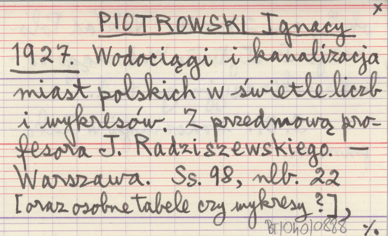 PIOTROWSKI Ignacy 1927 Wodociągi i kanalizacja miast polskich w świetle liczb i wykresów. Z przedmową profesora J. Radziszewskiego.