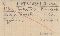 PIOTROWSKI Andrzej 1955 Poeta Tatr, Franciszek Henryk Nowicki.