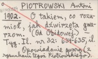 PIOTROWSKI Antoni 1902 O takiem, co rozumioł, jak dźwirzęta gwarzom. (Od Obidowej).