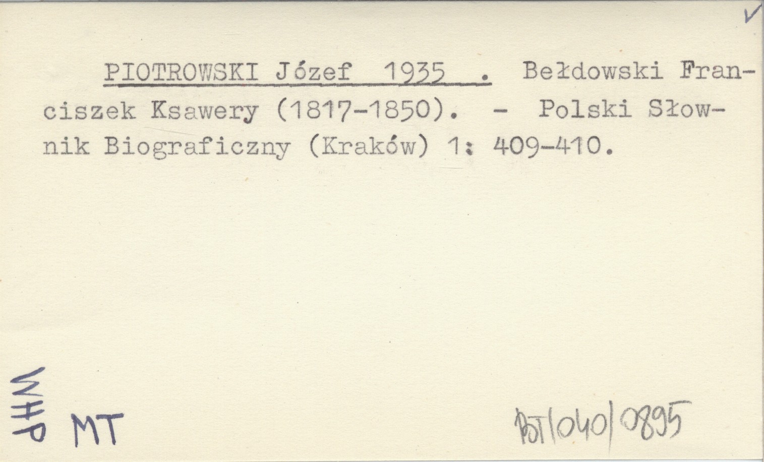 PIOTROWSKI Józef 1935 Bełdowski Franciszek Ksawery (1817-1850).