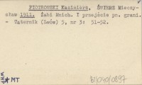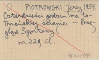 PIOTROWSKI Kazimierz ŚWIERZ, Mieczysław. ; 1911 Żabi Mnich. I przejście pn. grani.