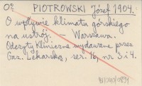 PIOTROWSKI Józef 1904 O wpływie klimatu górskiego na ustrój.