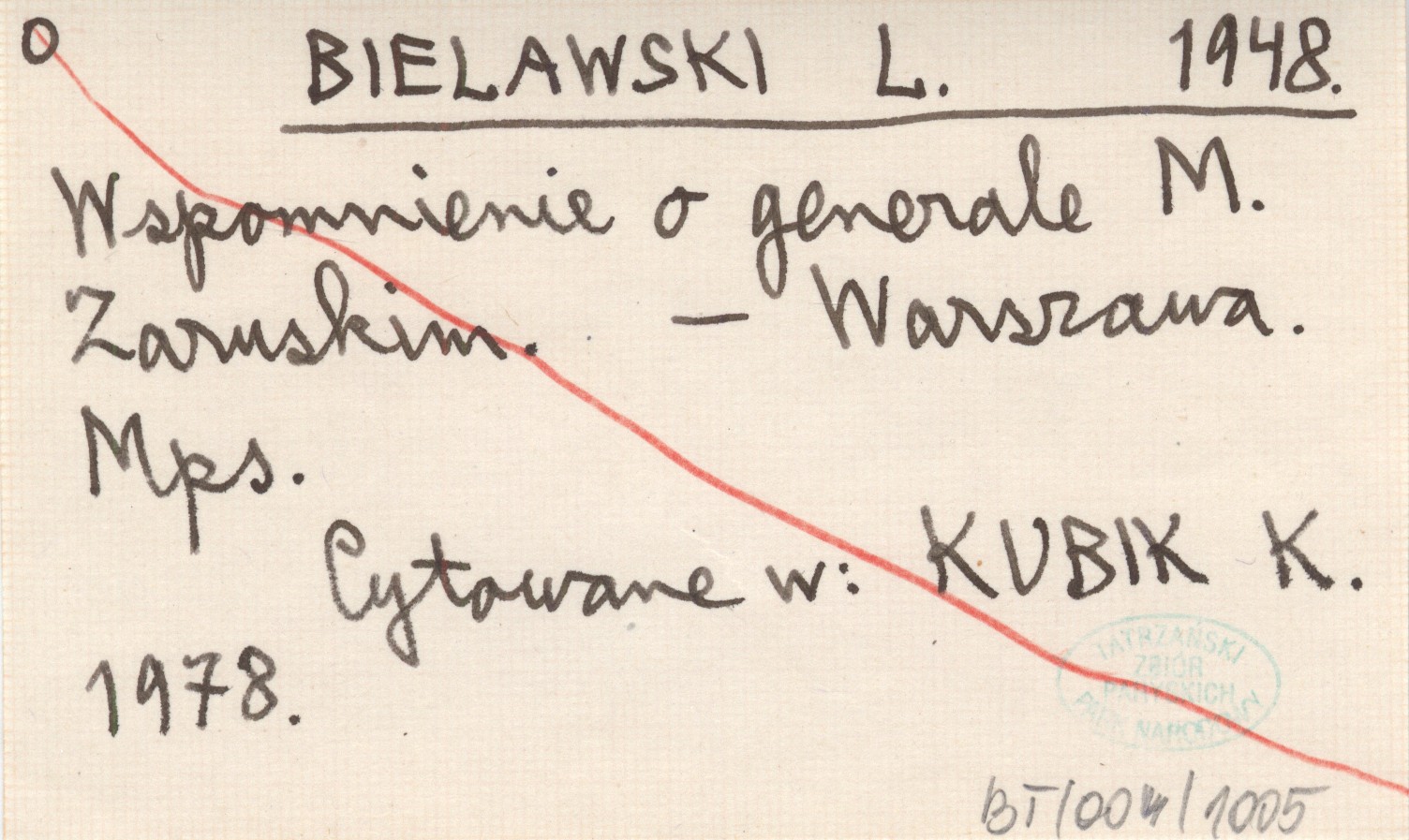 BIELAWSKI L. 1948 Wspomnienie o generale M. Zaruskim.