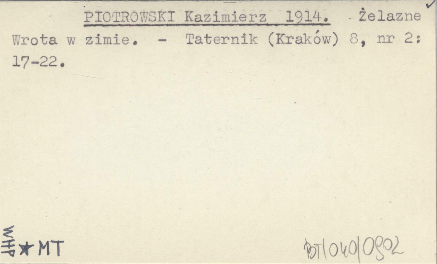 Taternik (Kraków) , 8, nr 2: 17-22.