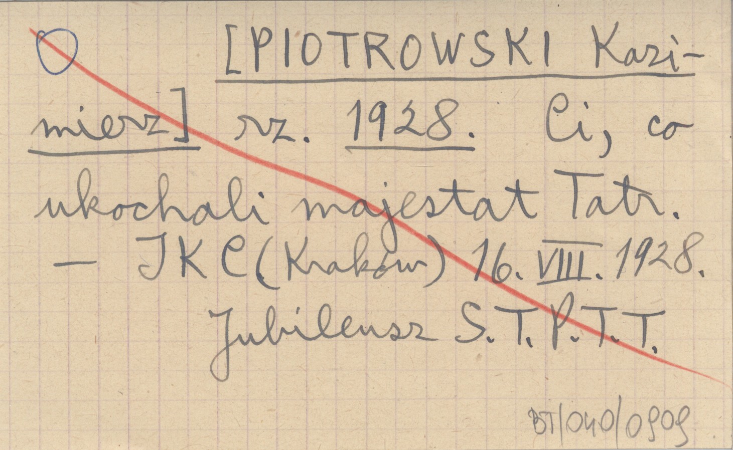 rz. [PIOTROWSKI Kazimierz] 1928 Ci, co ukochali majestat Tatr.