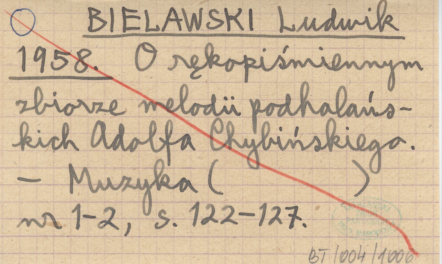 BIELAWSKI Ludwik 1958 O rękopiśmiennym zbiorze melodii podhalańskich Adolfa Chybińskiego.