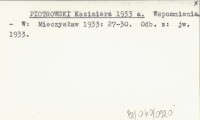 PIOTROWSKI Kazimierz 1933 a Wspomnienia.