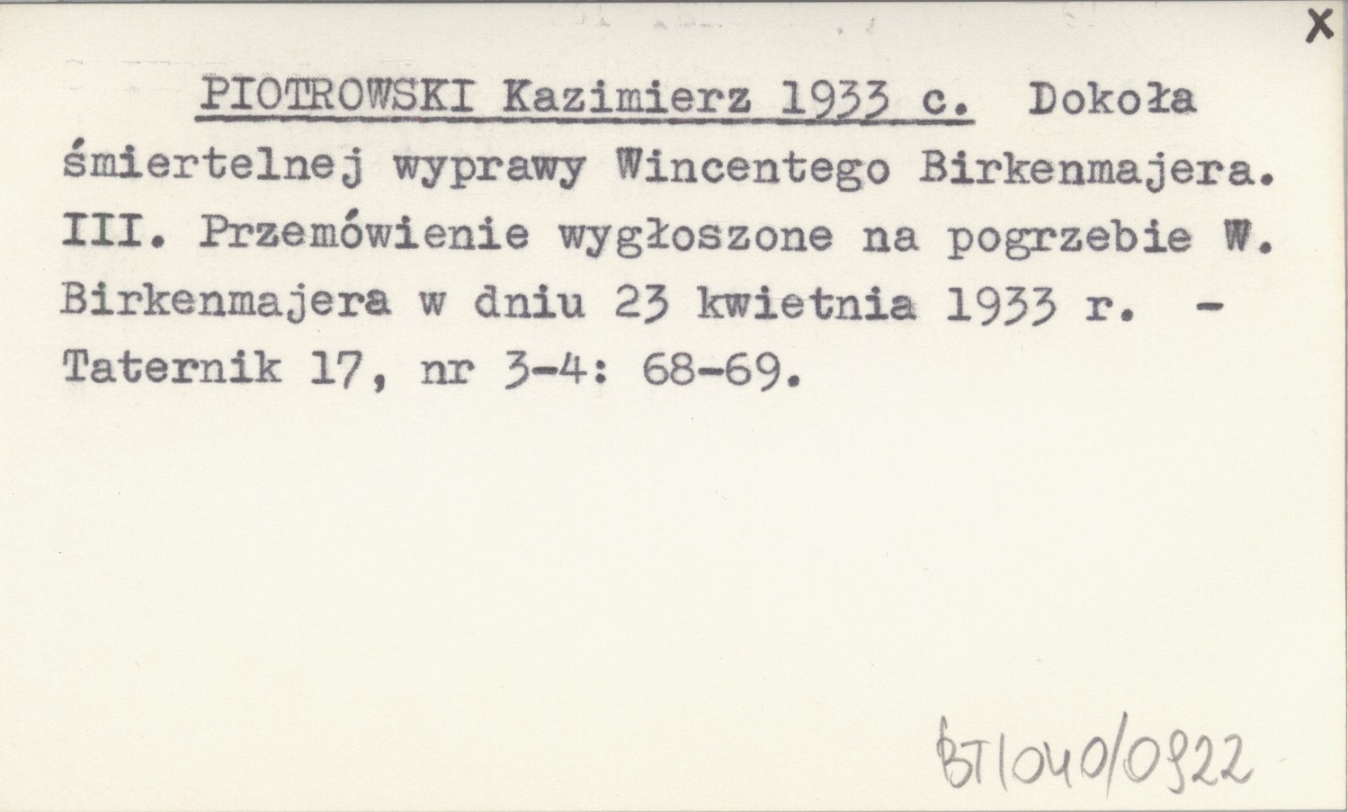 PIOTROWSKI Kazimierz 1933 c Dokoła śmiertelnej wyprawy Wincentego Birkenmajera. III. Przemówienie wygłoszone na pogrzebie W. Birkenmajera w dniu 23 kwietnia 1933 r.