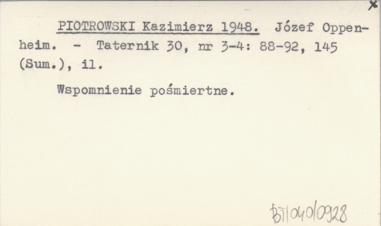 Taternik, 30, nr 3-4: 88-92, 145 (Sum.), il. Wspomnienie pośmiertne.