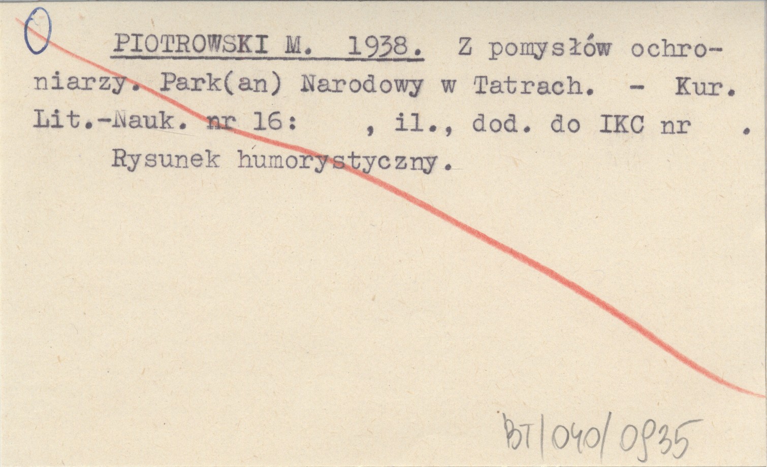 PIOTROWSKI M. 1938 Z pomysłów ochroniarzy. Park(an) Narodowy w Tatrach.