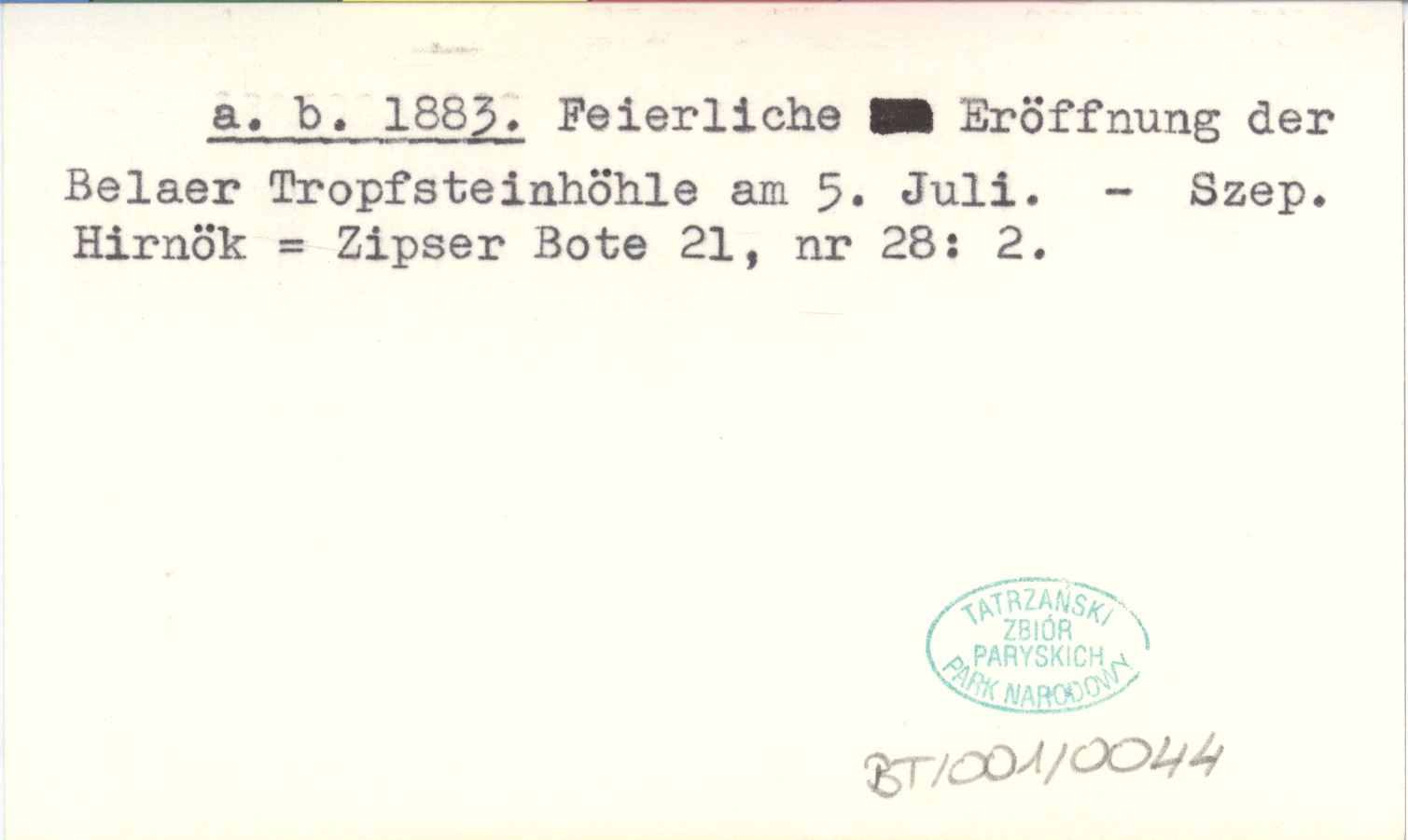 a. b. 1883 Feierliche Eröffnung der Belaer Tropfsteinhöhle am 5. Juli.