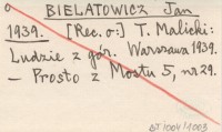 BIELATOWICZ Jan 1939 [Rec. o:] T. Malicki: Ludzie z gór. Warszawa 1939.