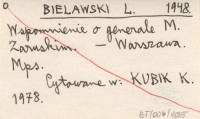 BIELAWSKI L. 1948 Wspomnienie o generale M. Zaruskim.