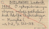 BIELAWSKI Ludwik 1958 O rękopiśmiennym zbiorze melodii podhalańskich Adolfa Chybińskiego.