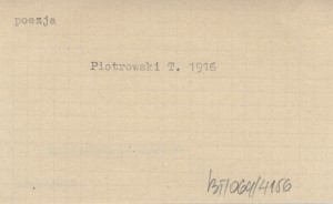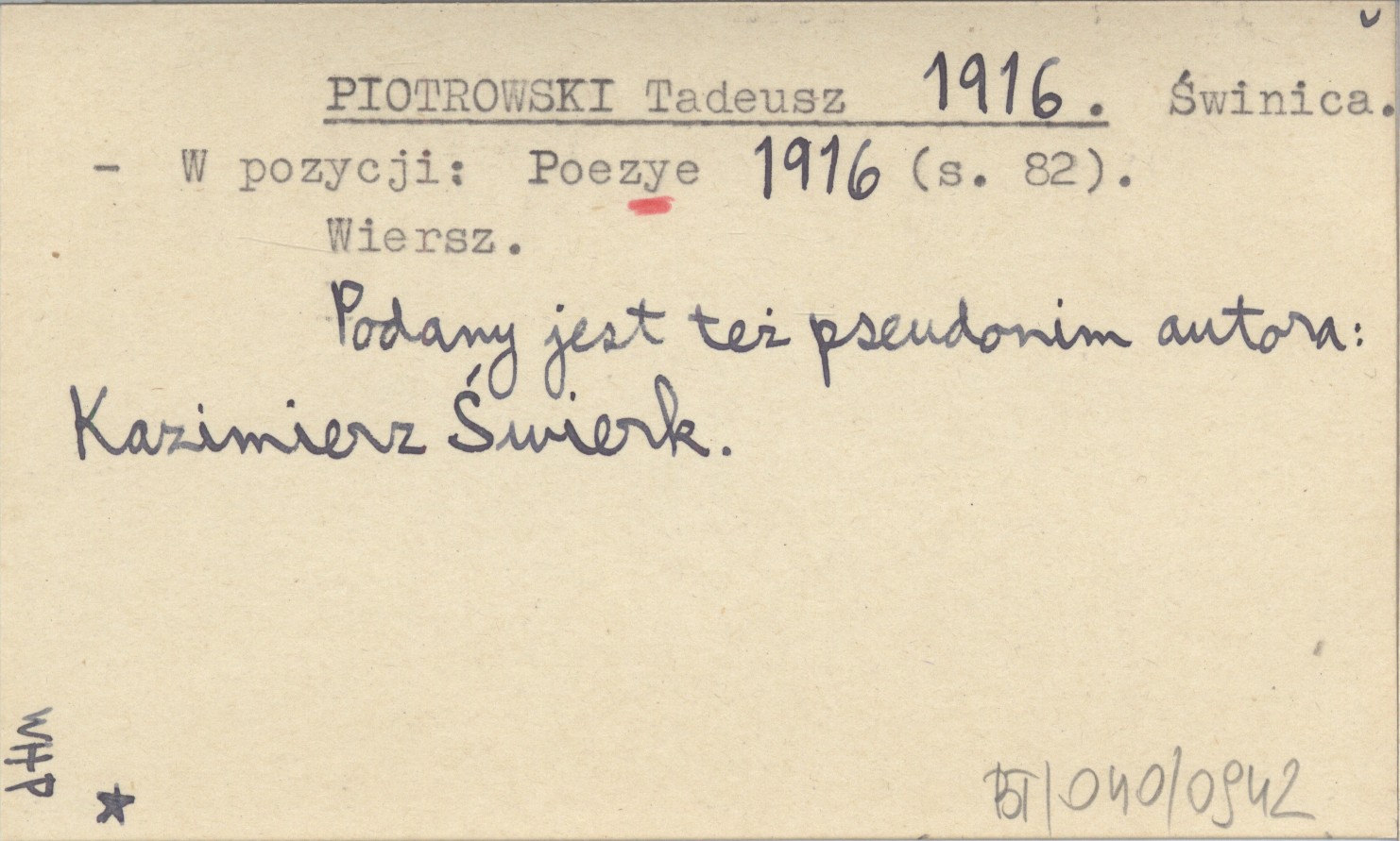Poezye 1916 , S. 82. Wiersz. Podany jest też pseudonim autora: Kazimierz Świerk.