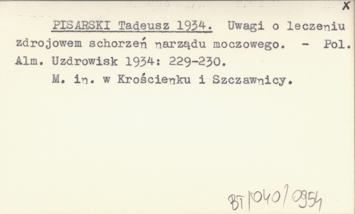 PISARSKI Tadeusz 1934 Uwagi o leczeniu zdrojowem schorzeń narządu moczowego.