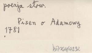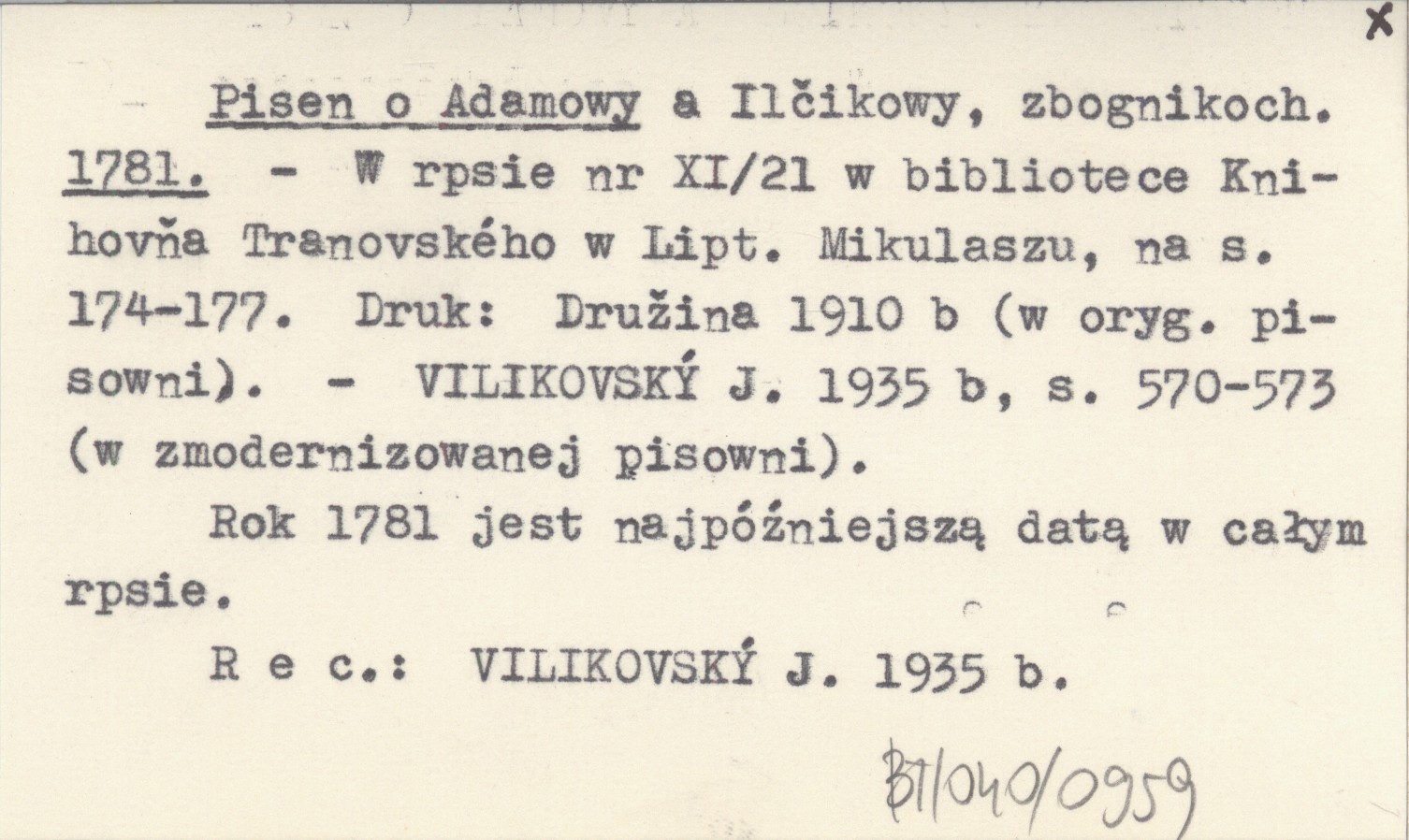 , Rok 1781 jest najpóźniejszą datą w całym rękopisie. W rękopisie nr XI/21 w bibliotece Knihovňa Tranovského w Liptowskim Mikulaszu, na s. 174-177. Druk: Družina 1910 b (w oryg. pisowni), VILIKOVSKÝ J. 1935 b: 570-573 (w zmodernizowanej pisowni). REC: VILIKOVSKÝ J. 1935 b