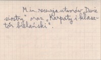 Przegląd Naukowy, R. 5, t. 3 (19): 583-593. M. in. recenzja utworów "Dwie siostry" oraz "Karpaty i klasztór bielański".