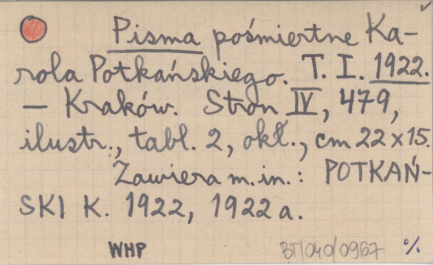 Kraków , T. I, IV, 479 s., il., 2 k., okł., 22x15 cm. Zawiera m. in.: POTKAŃSKI K. 1922, 1922 a. REC: SOCHANIEWICZ K. 1926 ; DĄBROWSKI J. 1923... ;