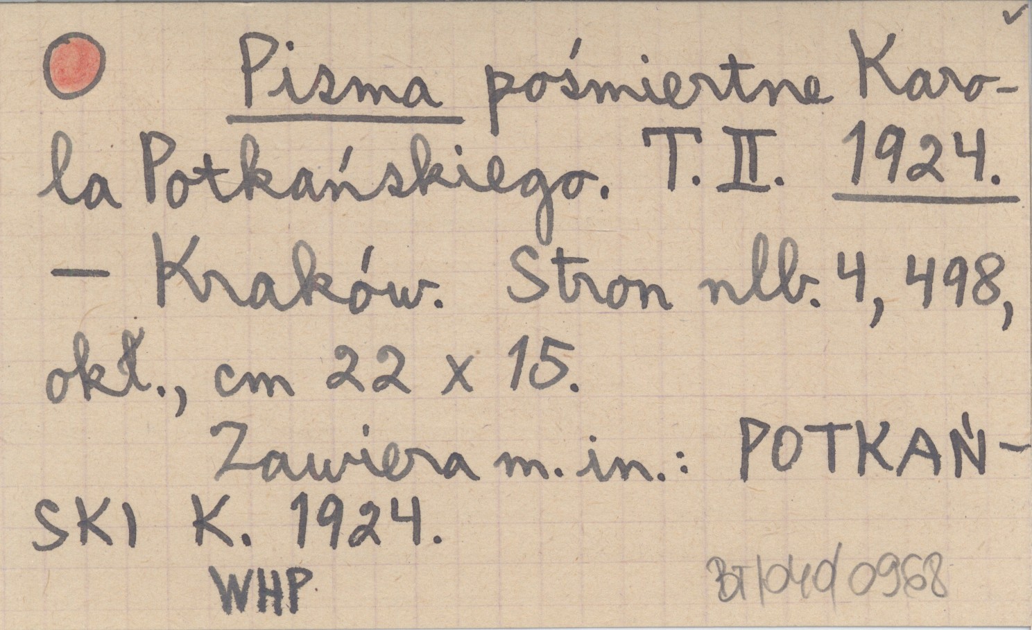 Kraków , T. II, [4], 498 s., okł., 22x15 cm. Zawiera m. in.: POTKAŃSKI K. 1924