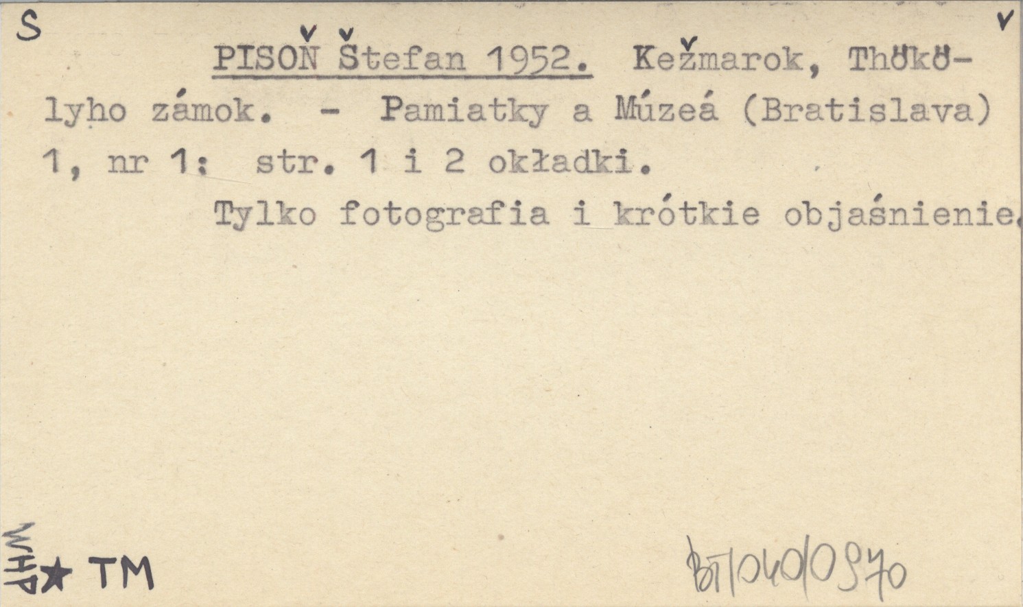 Pamiatky a Múzeá (Bratislava) , 1, nr 1, okł. (s. 1-2). Tylko fotografia i krótkie objaśnienie.