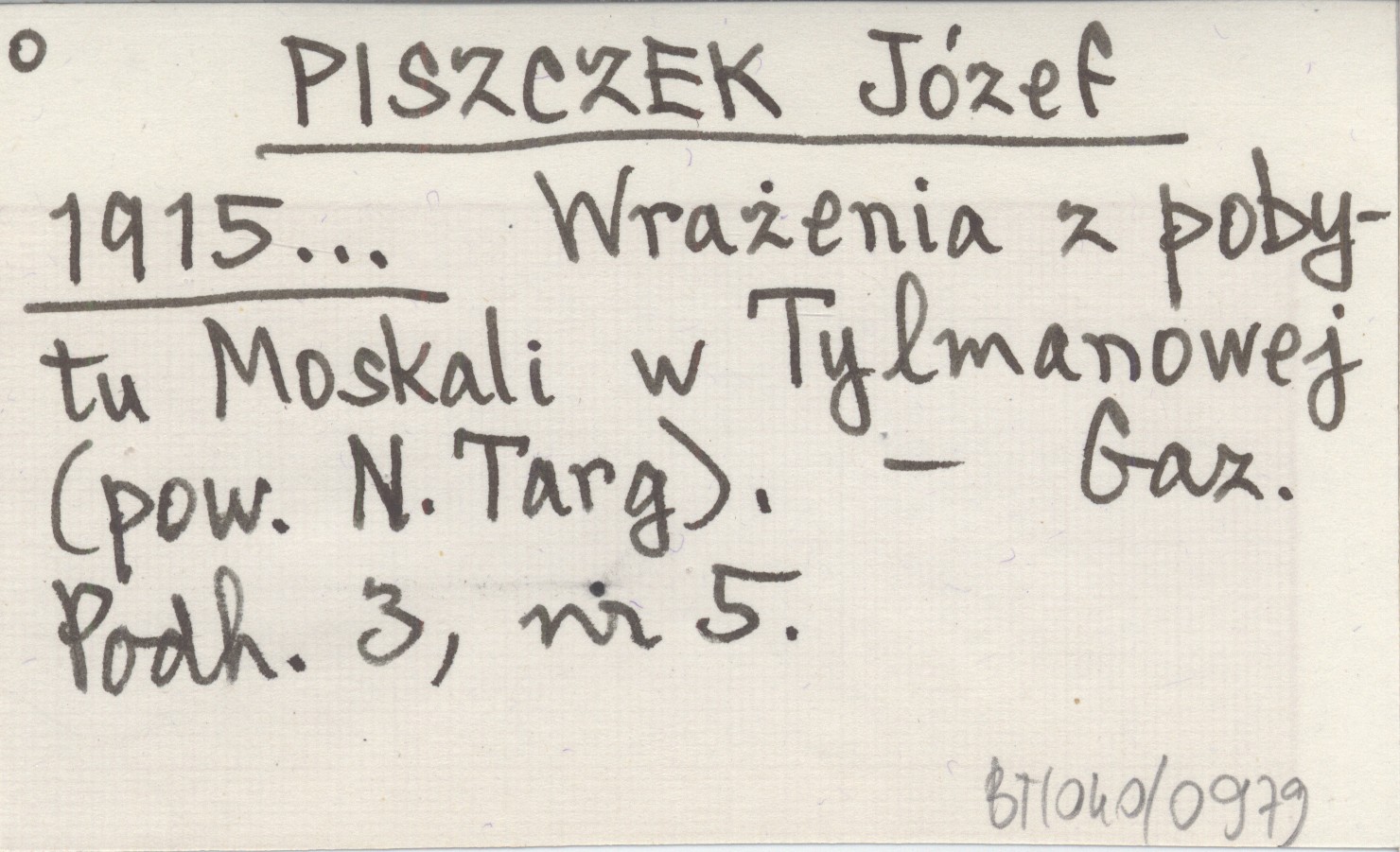 PISZCZEK Józef 1915... Wrażenia z pobytu Moskali w Tylmanowej (pow. N. Targ).