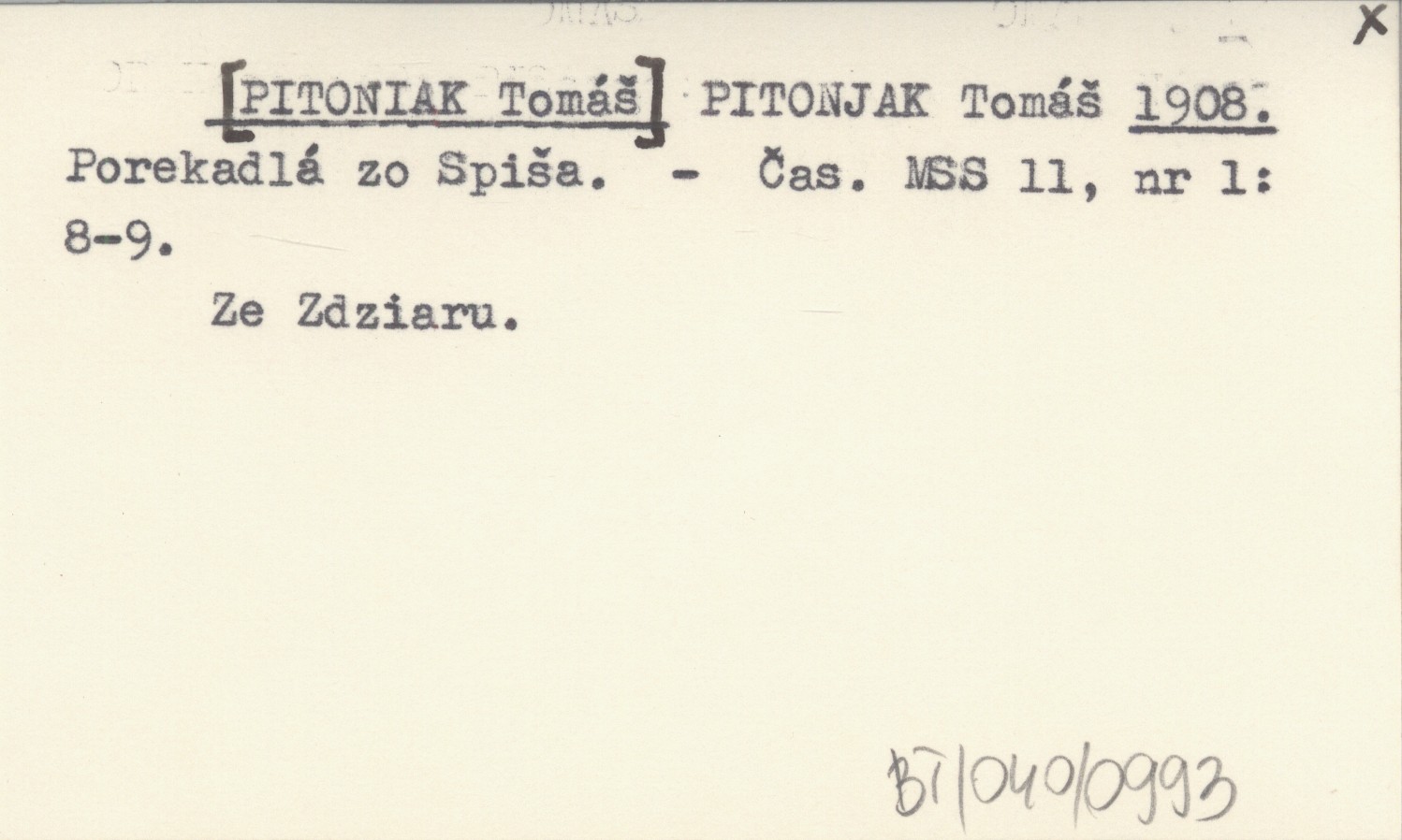 PITONJAK Tomáš [PITONIAK Tomáš] 1908 Porekadlá zo Spiša.