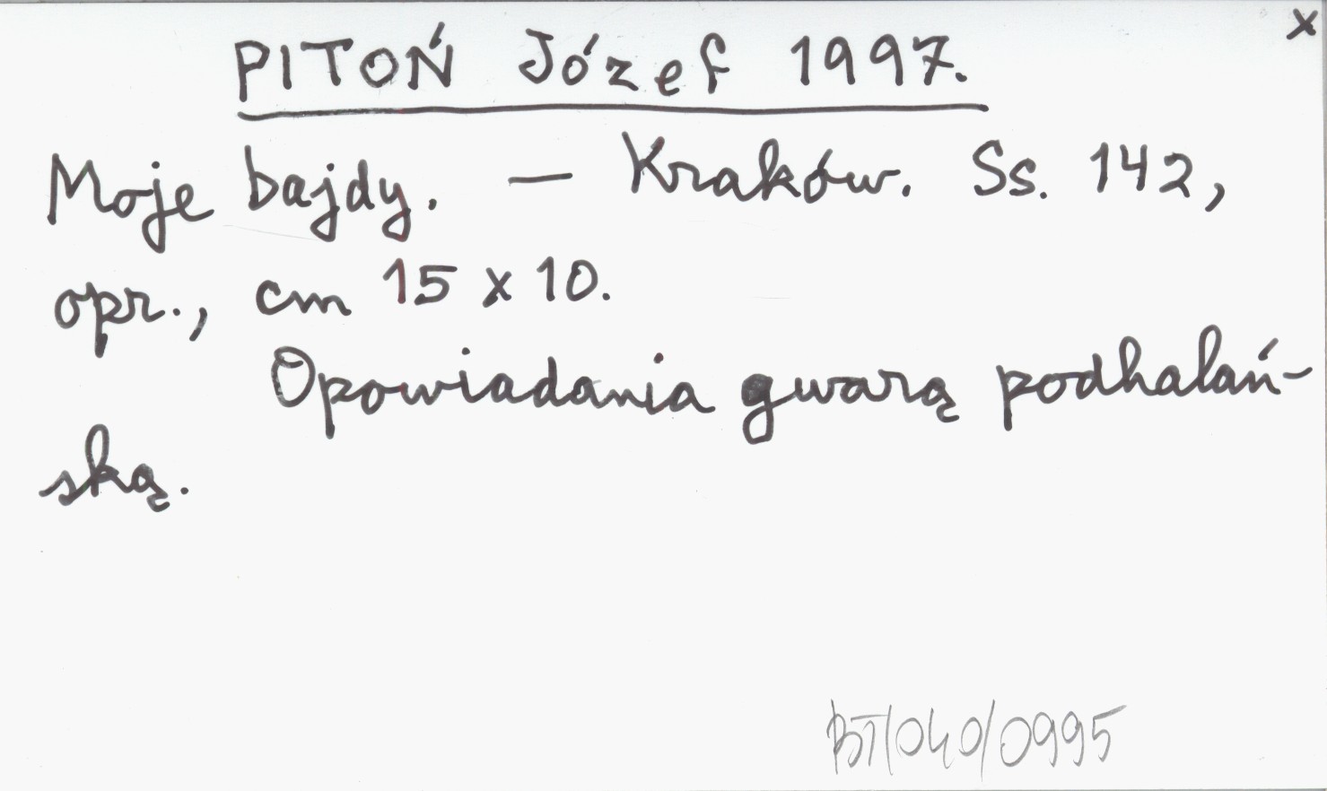 Kraków , 142 s., opr., 15x10 cm. Opowiadania gwarą podhalańską.