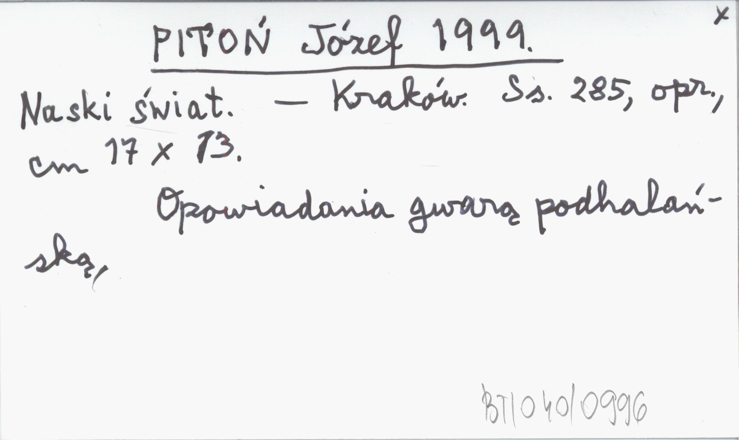 Kraków , 285 s., opr., 17x13 cm. Opowiadania gwarą podhalańską.