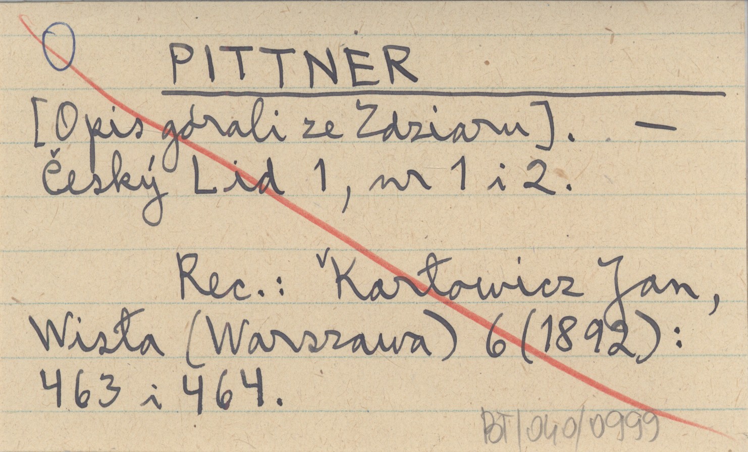 Český Lid, 1, nr 1, 2. REC: KARŁOWICZ Jan, Wisła (Warszawa) 6 (1892): 463, 464.